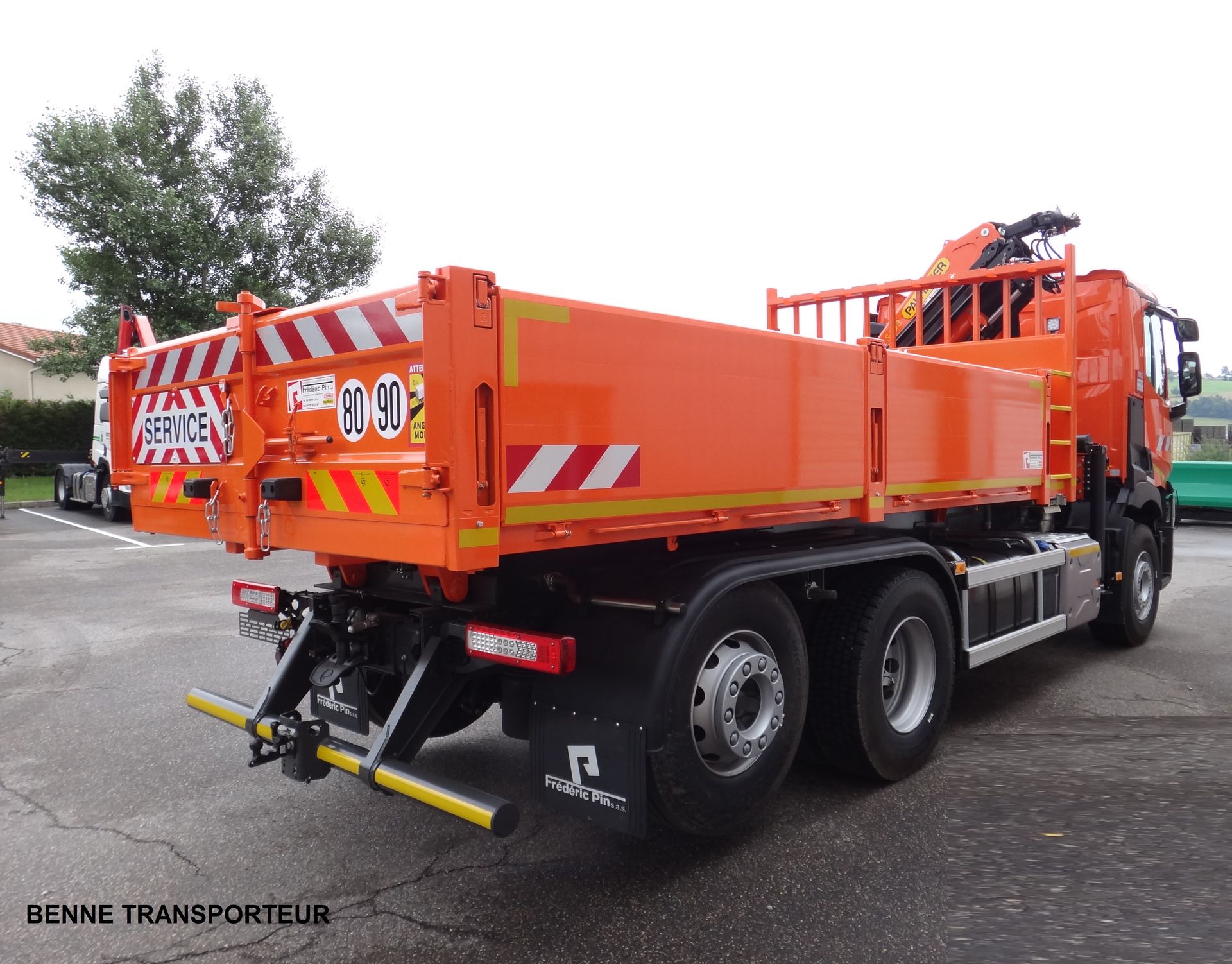 - Bennes transporteurs : ridelles rabattables à droite et à gauche (hydraulique en option) + Bennes entrepreneurs : ridelles fixes à droite et à gauche